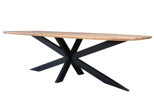 Mesa Exterior Ovalada de Madera de Acacia con Base de Hierro Pintada
