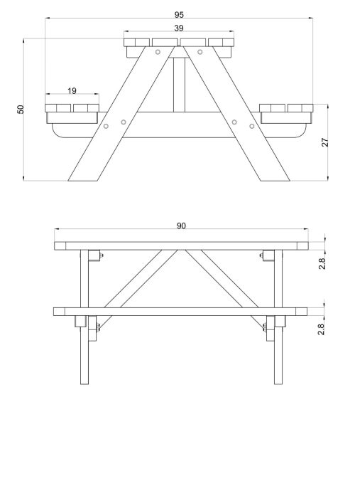 ¡Fabricado en madera de pino impregnada de 2,7 cm de espesor! 90 cm x 50 cm x 95 cm (largo x alto x ancho).