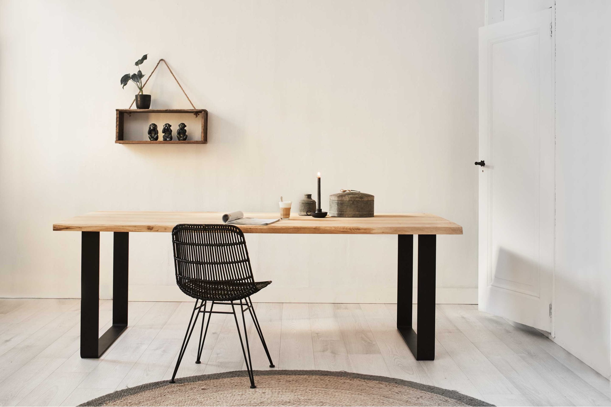 El aspecto industrial de las patas de la mesa permite una amplia gama de aplicaciones en zonas residenciales y de trabajo. Esta base de mesa es ideal para mesas de salón y comedor, pero también se puede utilizar como base para una mesa de oficina o un escritorio.