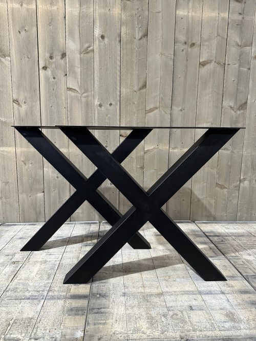 pata de mesas de hierro – forma cruzado, araña – pintada negro – 120×75 – 5×5