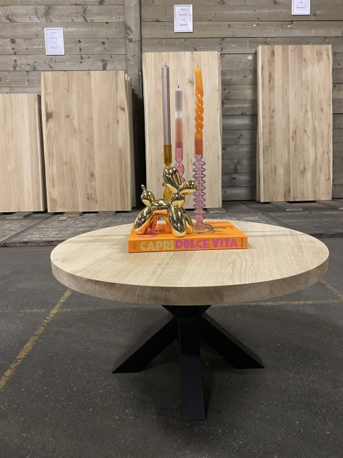 La madera es un producto natural, por lo que los tableros de las mesas pueden diferir mucho entre sí. Los tableros de la mesa se han secado varias veces, lo que minimiza el riesgo de grietas y fisuras, pero la madera es un producto natural y una mesa de roble macizo siempre puede «funcionar».