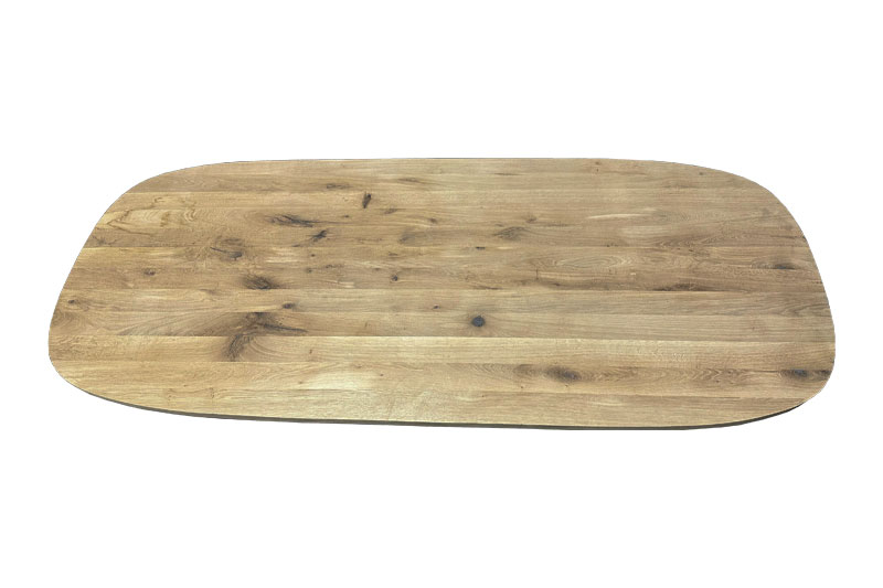 Descubra todos los aspectos de esta forma moderna, que se diferencia ligeramente de la mesa de comedor ovalada de roble normal. En una mesa ovalada «estándar», el tablero termina en punta. La mesa semiovalada destaca aquí porque el tablero se extiende hacia el interior formando un ángulo aplanado, casi rectangular.